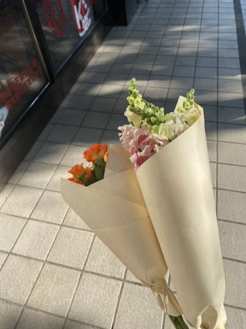 鲜花配美女。哈哈